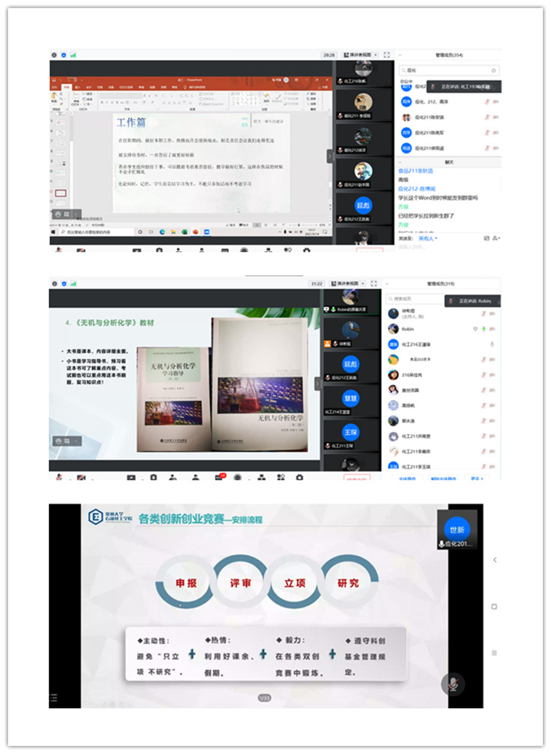 2021級本科新生入學(xué)教育由思想引領(lǐng)與價值塑造教育、校情概況與專業(yè)素養(yǎng)教育、入學(xué)適應(yīng)與行為養(yǎng)成教育、學(xué)生安全與心理健康教育、政策解讀與文明規(guī)范教育五大模塊組成,內(nèi)容包含校史校情教育、黨團知識教育、專業(yè)導(dǎo)航教育、安全教育等十三項教育內(nèi)容。針對疫情防控形勢下新生延期開學(xué)的情況,學(xué)院全面開展新生線上入學(xué)教育,通過在線課程、線上專題會議等形式面向全體新生展開。學(xué)院進行針對學(xué)院具體實際來開展學(xué)院、專業(yè)介紹、專業(yè)思想教育、學(xué)生適應(yīng)性教育、班主任開班會、在線干部競選、學(xué)院社團線上交流會等,使新生對大學(xué)生活與學(xué)習(xí)有全面了解。全體新同學(xué)認真參加線上入學(xué)教育,以飽滿熱情迎接大學(xué)新生活。